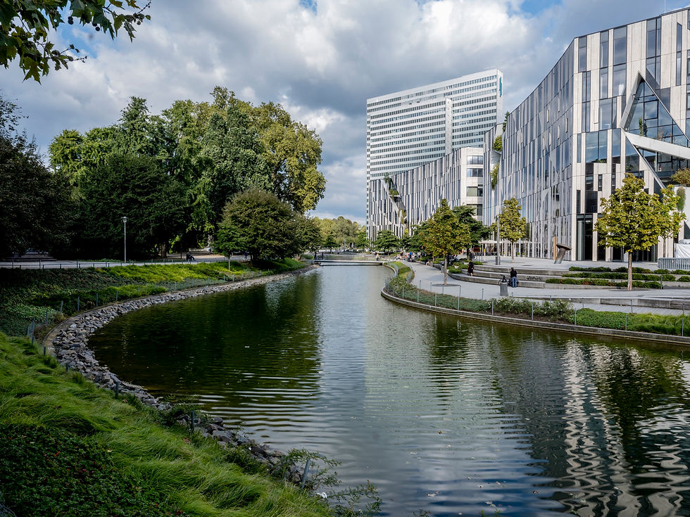 Der Kö-Bogen I ist für Düsseldorf ein echter Meilenstein. Er steht für die gelungene Verbindung von Architektur und städtischer Entwicklung. Das von Daniel Libeskind entworfene Ensemble hat der Stadt ein neues, unverwechselbares Gesicht verliehen und bietet durch den vielfältigen Mietermix einen attraktiven Anziehungspunkt. Für mich als Landschaftsarchitekt ist es faszinierend zu sehen, wie Architektur und urbane Qualität hier Hand in Hand gehen. Der angrenzende Hofgarten ist ein gutes Beispiel für einen städtischen Freiraum, der tief in der Geschichte und Identität Düsseldorfs verwurzelt ist. Solche Orte prägen das Stadtbild, ähnlich wie der Eiffelturm in Paris oder die Ramblas in Barcelona. Mit der Neugestaltung und gezielten Aufwertung von Düssel, Landskrone und Kö-Graben wollten wir diese städtebauliche Identität noch stärker hervorheben.