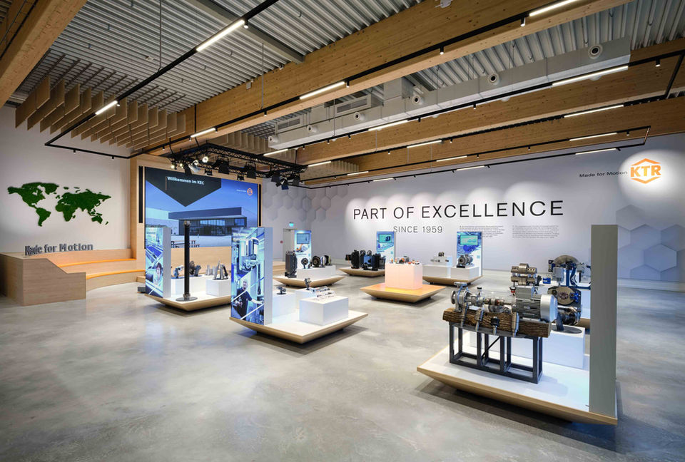 Das multifunktionale KTR Exhibition Center in Rheine bietet neue Möglichkeiten für die Vertriebsprozesse am Standort. Denn für die KTR Systems GmbH ist das Miteinander mit den Kunden besonders wichtig. Der Hersteller hochwertiger Kupplungen, Kühler, Bremsen und Hydraulik-Komponenten für den weltweiten Maschinen- und Anlagenbau entwickelt passgenaue Lösungen. Hier setzt das Exhibition Center an und bietet auf rund 750 Quadratmetern vielfältige Präsentationsflächen und Raum für professionellen Austausch.